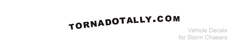 Tornado Tally window decals are a great way to show you're proud to be a storm spotter or chaser. Decals represent the tornadoes you've witnessed. You can also get custom made 'commemorative' stickers with the name and date of the event you'll never forget. |